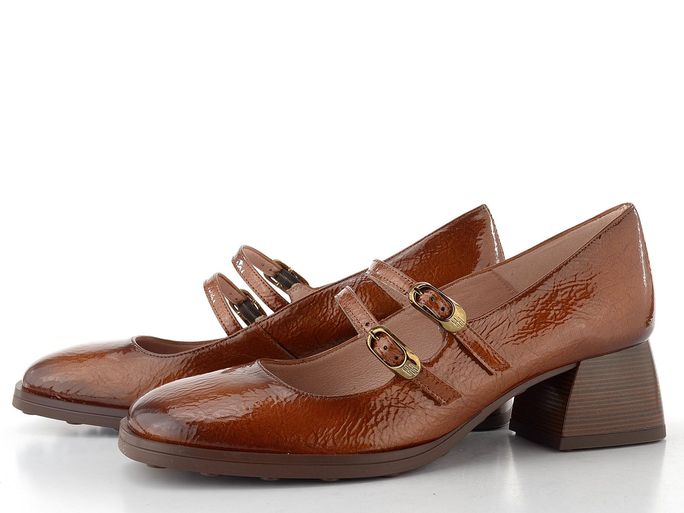 Skvěle padnoucí lodičky značky Hispanitas s nártovými pásky přinášejí jedinečný styl a pohodlí. Tyto otevřené boty s efektním střihem do karé špičky jsou vyrobeny z mačkané lakované kůže v přírodním hnědém odstínu s měděným nádechem. Nastavitelné nártové pásky na pružence zajišťují perfektní fit, zatímco měkká stélka s technologií TRIFLOW® poskytuje vynikající odpružení pro celodenní nošení. S flexibilní vyšší podešví a pohodlným širokým podpatkem se hodí jak do kanceláře, tak na formální příležitosti. Nezapomeňte, že při nošení se může materiál přirozeně zvrásnit, což je typické pro jeho vlastnosti.