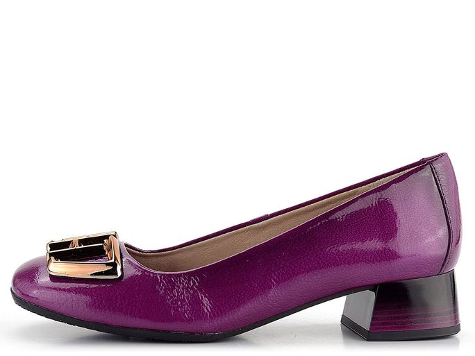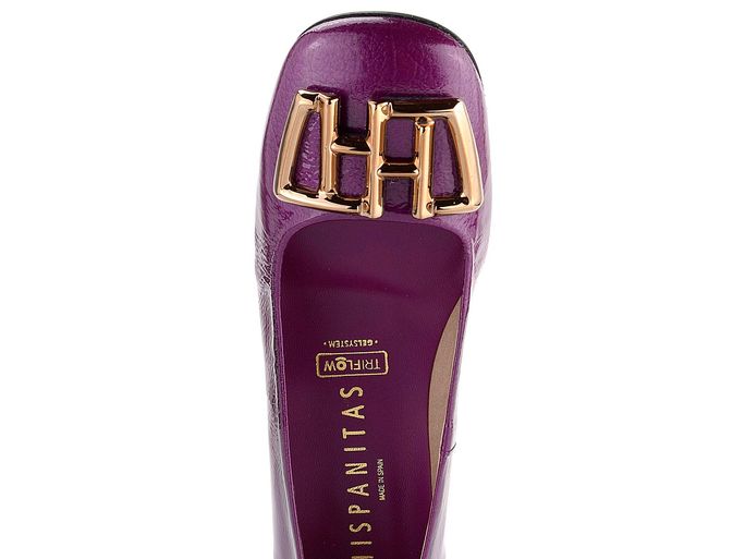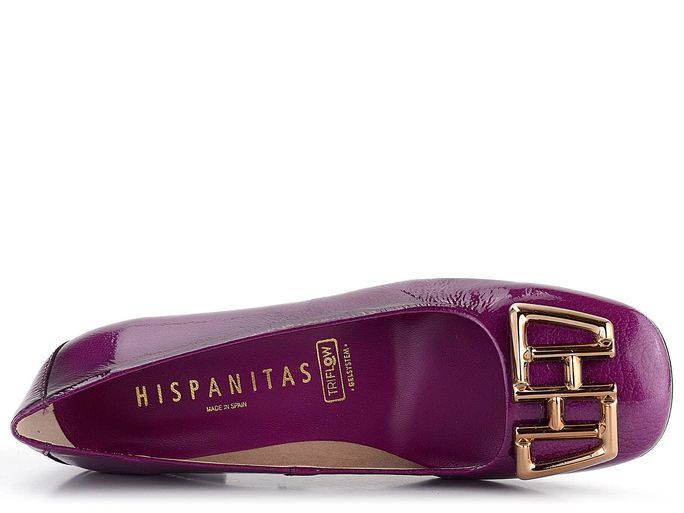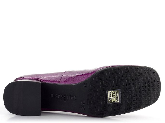 Elegantní a nepřehlédnutelné lodičky v módním odstínu magenta od značky Hispanitas jsou skvělou volbou pro podzimní a zimní sezónu. Tyto lodičky se pyšní lakovanou kůží se strukturou, která zaujme na první pohled. Krásný sytý odstín fialové (magenta) je doplněn ozdobnou kovovou sponkou v blyštivé mosazné barvě, což dodává botám luxusní vzhled.