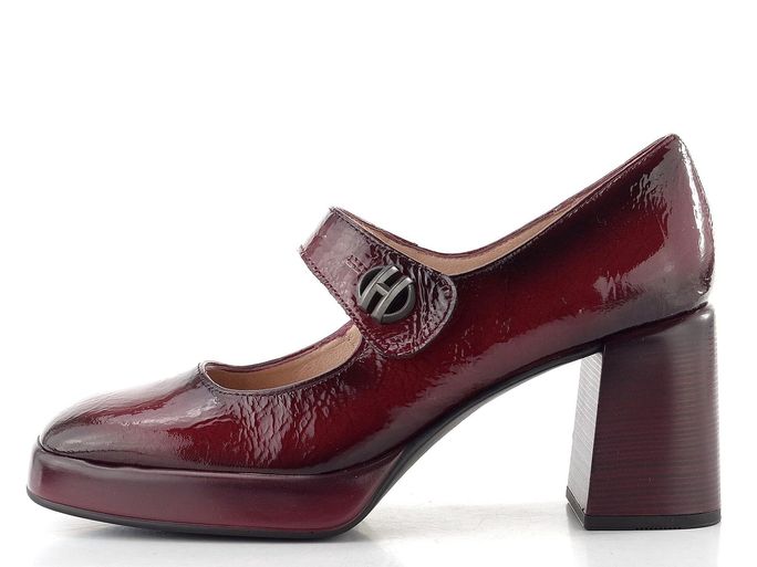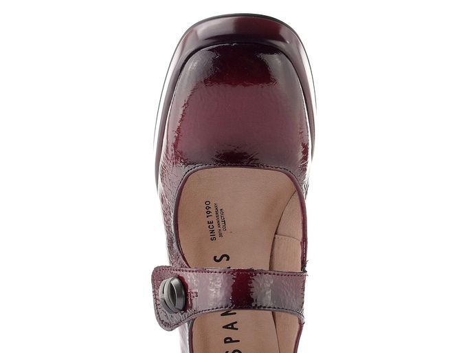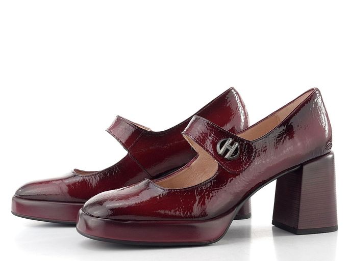 Luxusní dámské lodičky značky Hispanitas v tmavě vínové barvě se stanou nezbytným kouskem vašeho podzimního a zimního šatníku. Jejich módní střih s hranatější špičkou a nártový pásek s kovovým logem dodávají obuvi jedinečný charakter. Svršek z lakované kůže s mačkanou strukturou přináší nejen styl, ale také kvalitu.