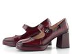 Dámské lodičky z lakované kůže, s dominantním širokým podpatkem a pružným nártovým páskem.