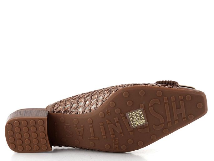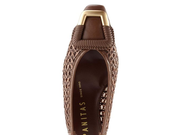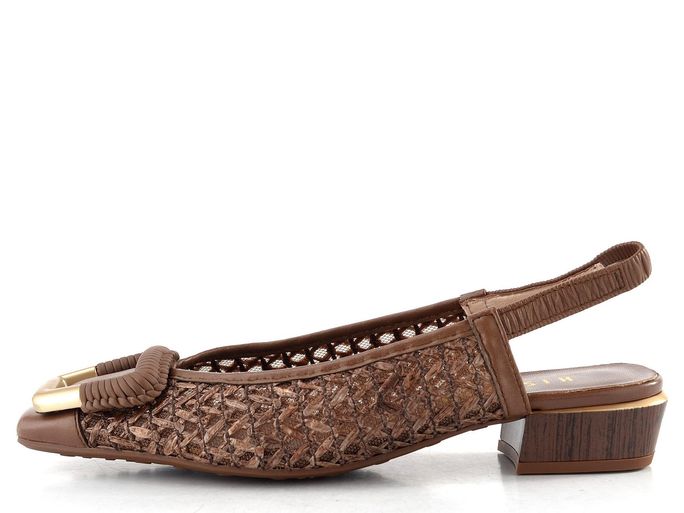 Elegantní lodičky značky Hispanitas s volnou patou Azucena Avellana RHV264658 jsou ideální volbou pro ženy, které hledají kombinaci stylu a pohodlí. Tyto otevřené boty v čokoládově hnědé barvě se vyznačují užším karé špičkou a svrškem z hladké kůže a splétaného umělého lýka, což dodává obuvi jedinečný vzhled. Ozdobná spona na špičce v tmavě hnědé a matně zlaté barvě podtrhuje jejich eleganci.