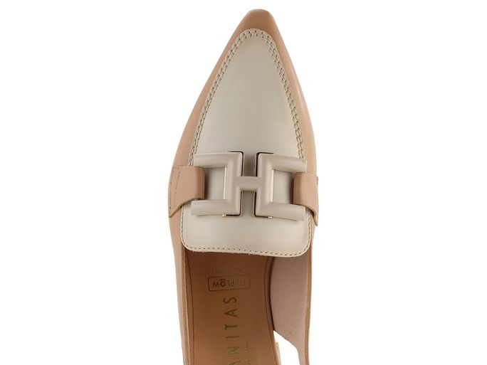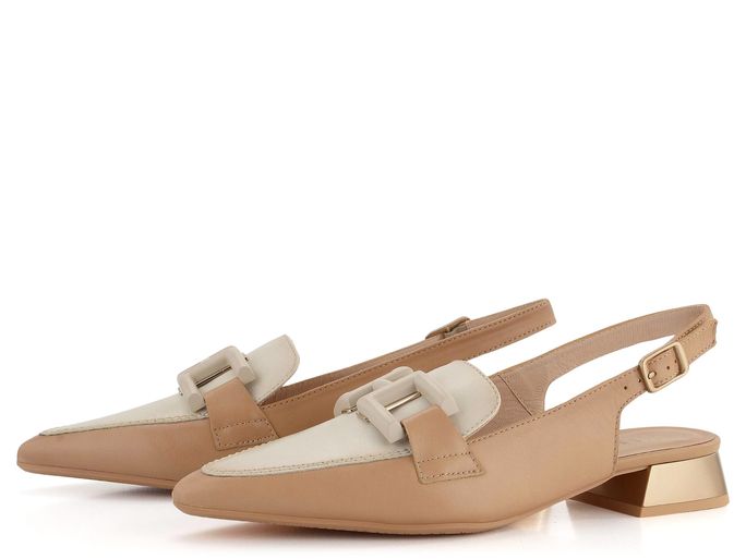 Elegantní a stylové lodičky s volnou patou od značky Hispanitas jsou ideální volbou pro každou ženu, která hledá spojení komfortu a luxusu. Tyto celokožené lodičky v béžových tónech se pyšní špičatým střihem a hladkým koženým svrškem. Kombinace béžové a krémové barvy dodává botám sofistikovaný vzhled, zatímco ozdobná spona na nártu v béžovo-zlaté barevné kombinaci přidává nádech elegance.