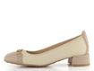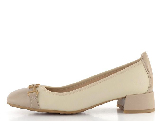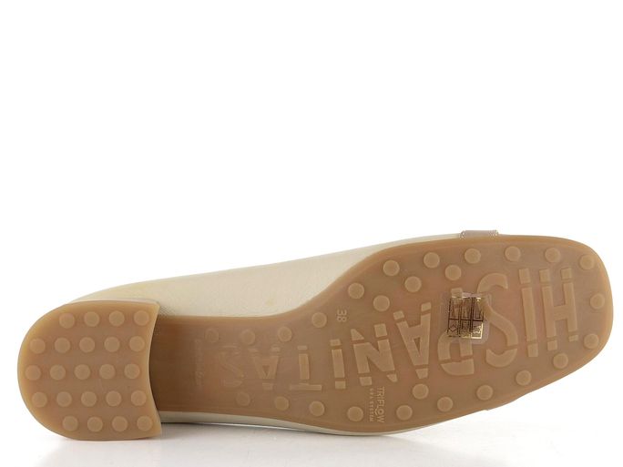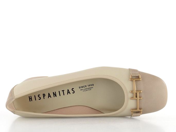 Dámské lodičky od značky Hispanitas v elegantní béžovo-smetanové kombinaci představují ideální volbu pro ty, kdo hledají stylovou a komfortní obuv. Vyrobené z kvalitní hladké kůže, tyto lodičky nabízejí pohodlný střih s prostornou karé špičkou. Ozdobná spona v matném bronzovém provedení dodává obuvi jedinečný vzhled. Díky pružence v obvodu se přizpůsobí každé noze a zajišťují příjemné nošení. Technologie TRIFLOW ve stélce poskytuje měkkou a komfortní chůzi. Flexibilní latexová podešev a stabilní podpatek o výšce 3,5 cm zajišťují bezpečný krok. Tyto lodičky jsou skvělou volbou pro každodenní nošení i formální příležitosti.