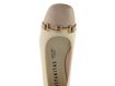 Dámské nevšední lodičky z hladké kůže ve smetanové a šedobéžové barvě, doplněné ozdobnou sponou na špičce.