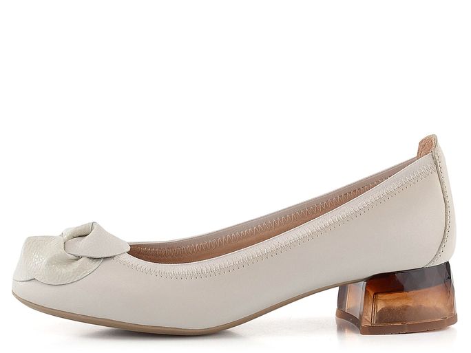 Elegantní a pohodlné dámské lodičky v jemném smetanovém tónu s originálním podpatkem.