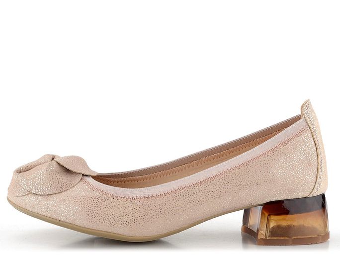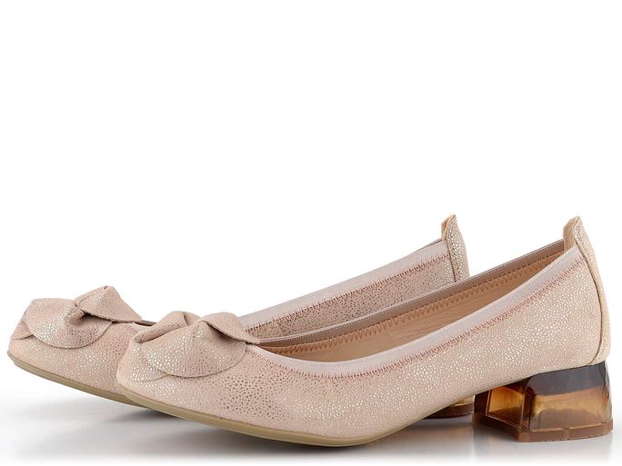 Elegantní a pohodlné dámské lodičky v jemném pudrově růžovém tónu s originálním podpatkem.