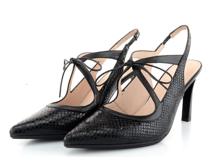 Černé hadinkové lodičky s elegantním šněrováním a volnou patou.