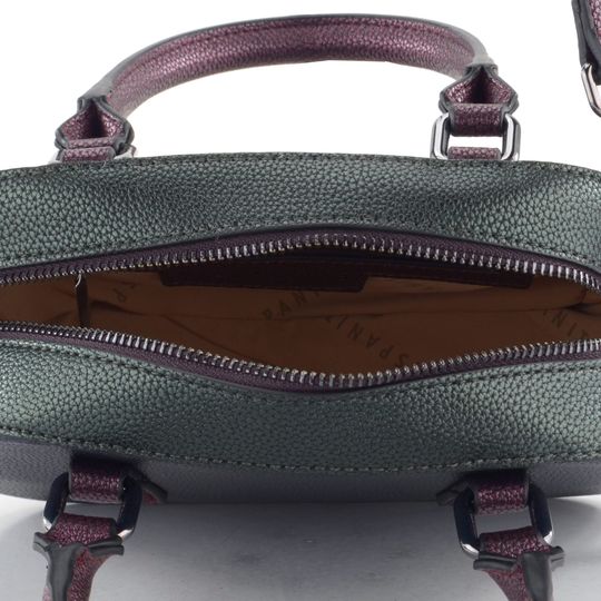 Elegantní a stylová, dámská metalická crossbody kabelka od značky Hispanitas je ideální volbou pro podzimní a zimní sezónu. Tato kabelka zaujme kombinací tmavě modré, tmavě zelené a vínově červené barvy v metalickém lesku, což dodává vašemu outfitu jedinečný šmrnc. Vyrobená ze strukturované syntetiky, kabelka si udržuje svůj tvar a nabízí pevnou konstrukci. Praktické detaily zahrnují dvoucestný zip pro snadné uzavírání, vnitřní kapsičku na cennosti a malou kapsičku bez uzavření. Pevná madla a odepínatelný ramenní pásek s délkovou regulací (cca 120 cm +/- 9 cm) zajišťují pohodlné nošení. S rozměry 22 cm na šířku, 13,5 cm na výšku a hloubkou dna 7 cm, je tato kabelka nejen stylová, ale i praktická. Na přední straně nechybí logo značky, které podtrhuje její exkluzivitu.