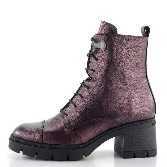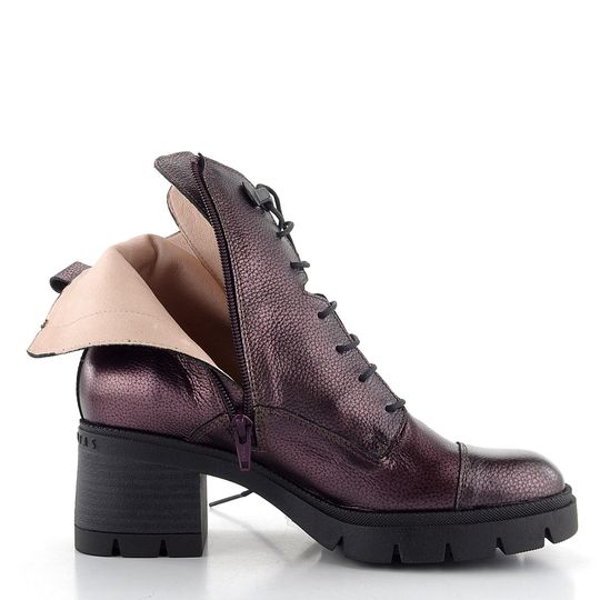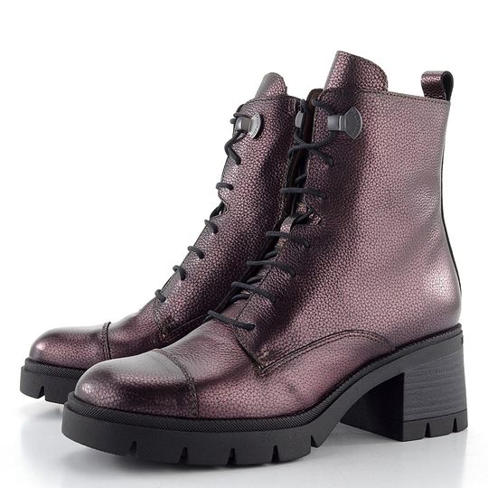 Dámský kotník od značky Hispanitas je ideální volbou pro podzimní a zimní sezónu. Tento model zaujme svým metalickým vínovým odstínem, který dodá vašemu outfitu jedinečný šmrnc. Svršek je vyroben ze strukturované kůže, která nejen vypadá skvěle, ale také zajišťuje dlouhou životnost obuvi. Šněrování v kombinaci s postranním zipem umožňuje snadné a rychlé nazutí. Vnitřní podšívka je z technického mikrovlákna, které je veganské, ekologické, prodyšné a termoregulační. Extra měkká stélka s technologií TRIFLOW poskytuje výjimečné odpružení, takže se budete cítit pohodlně po celý den. Vyšší podešev se širokým podpatkem a hrubým vzorkem zajišťuje stabilitu a bezpečnost na každém kroku. Výška podpatku je 6,5 cm a výška kotníku 14 cm. Tento model kombinuje styl, pohodlí a udržitelnost, což z něj činí perfektní volbu pro moderní ženu.