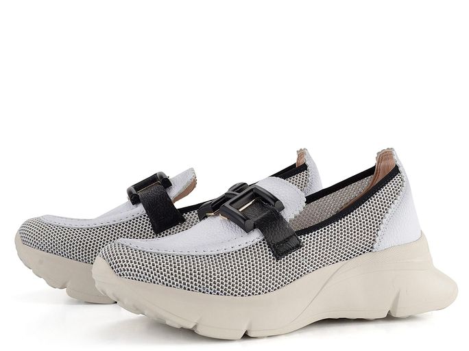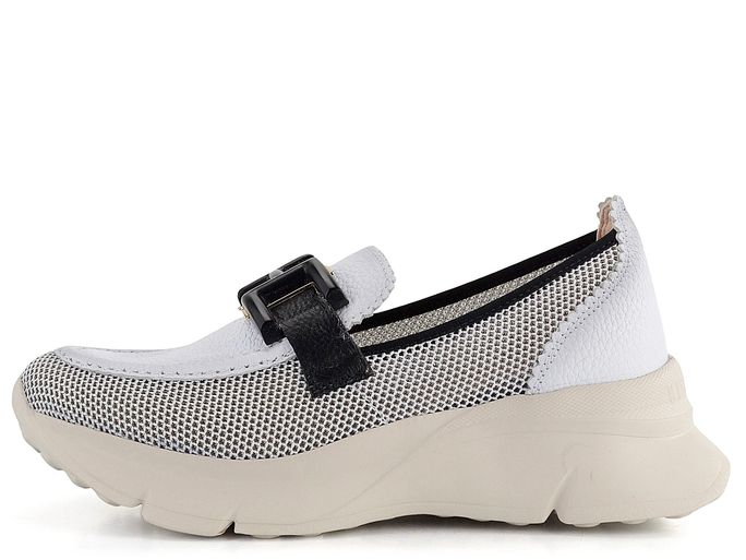 Vzdušné dámské mokasíny v černobílém barevném provedení na vysoké lehké platformě.