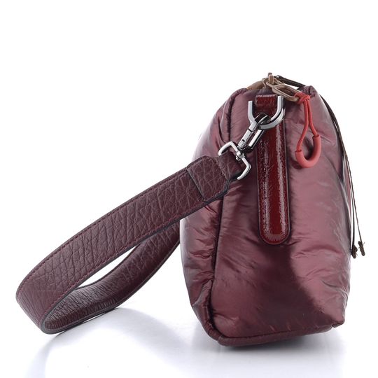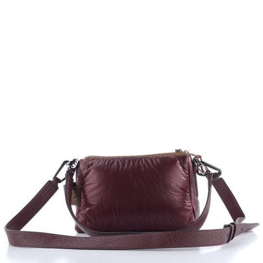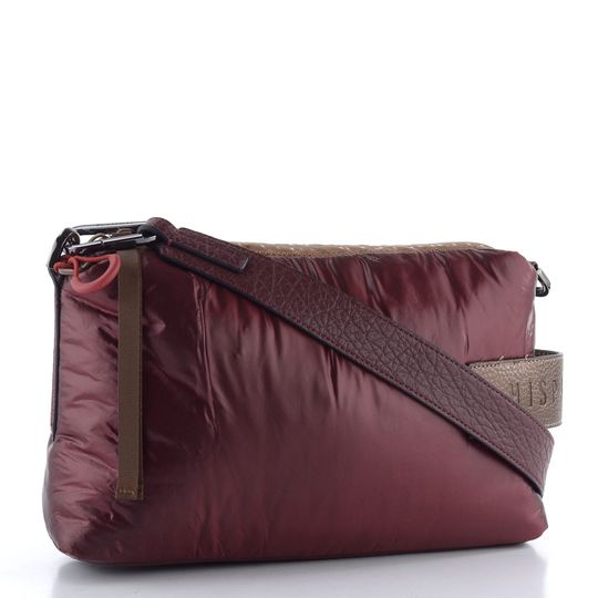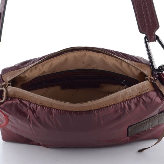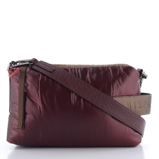 Dámská crossbody kabelka od značky Hispanitas spojuje sportovní styl s praktičností. Je vyrobena z poddajné nylonové textilie s jemným metalickým leskem, což jí dodává elegantní vzhled. Vínový odstín s hnědými doplňky a kováním v barvě tmavší oceli činí tuto kabelku skvělým módním doplňkem pro každou příležitost.