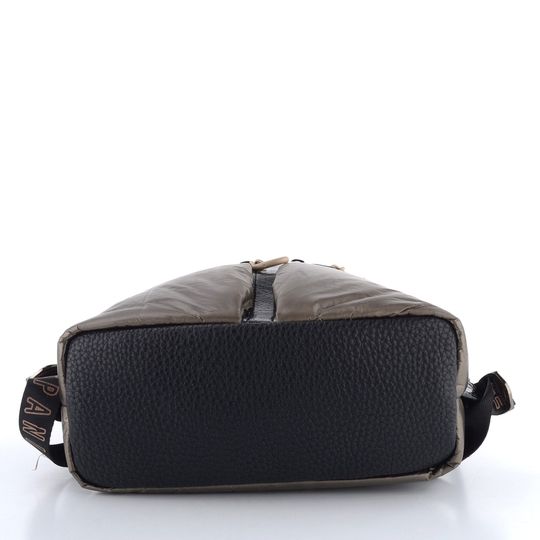 Dámský městský batoh ve sportovním střihu, vyrobený z nylonové textilie s jemným metalickým leskem.