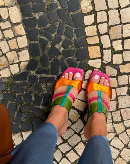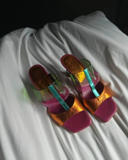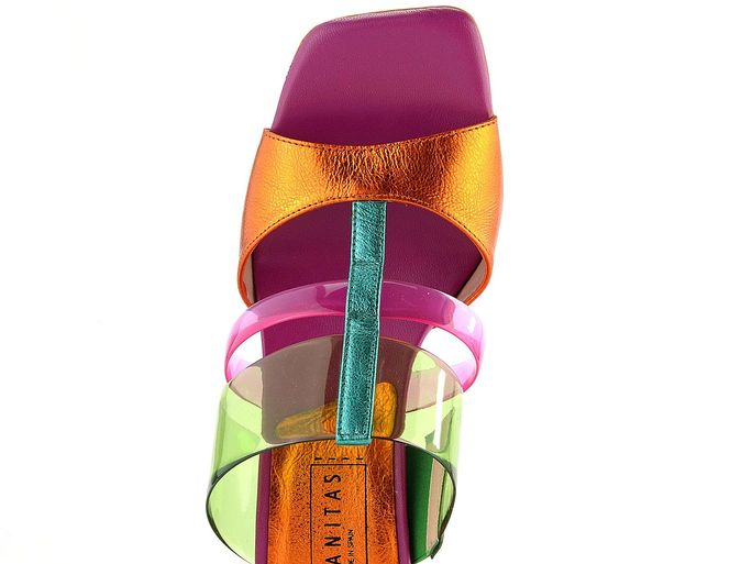 Luxusní dámské pantofle od značky Hispanitas z kolekce jaro/léto 2024 přinášejí jedinečný styl a komfort. Tyto páskové boty zaujmou trendovým karé střihem a výraznou kombinací metalických barev - oranžové, zelené a fuchsiově růžové. Svršek je z jemně strukturované kůže a syntetiky, což zajišťuje dlouhou životnost a pohodlí. Široká pruženka na vnitřní straně zaručuje optimální padnutí na nohu, zatímco přední pásek je podšitý syntetikou pro extra komfort.