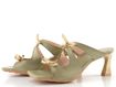 Výjimečné dámské kožené pantofle v zelené barvě s mašličkami a štíhlým tvarovaným podpatkem.