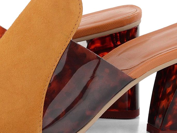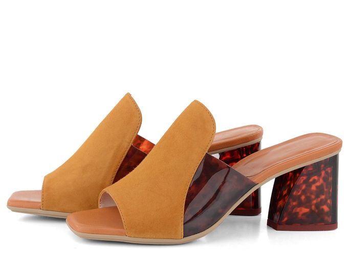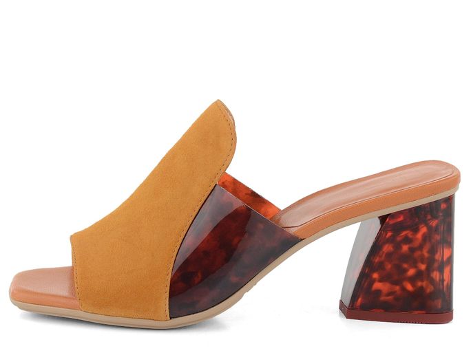 Originální, luxusní dámské pantofle v zajímavé materiálové kombinaci a s netradičním průsvitným podpatkem.