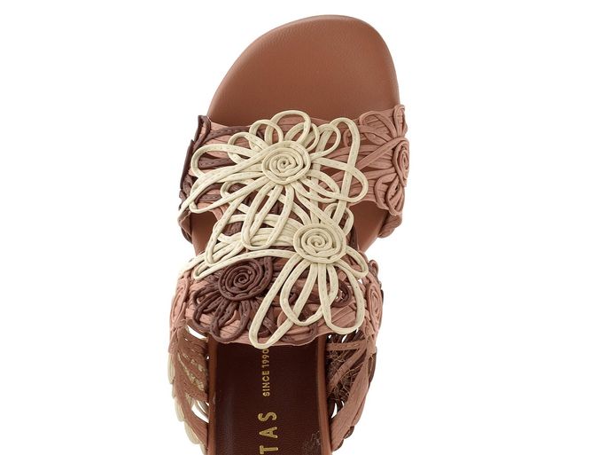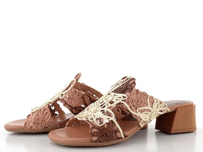 Výjimečné dámské pantofle s jemnými proužky splétanými do květinového vzoru a se širokým stabilním podpatkem.