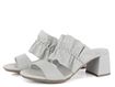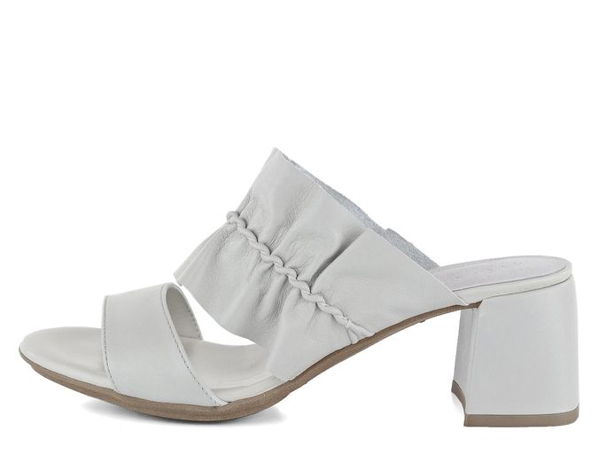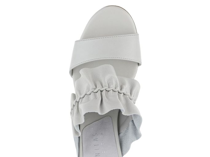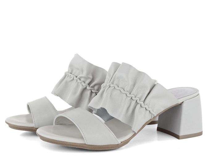 Dámské pantofle s řaseným nártovým páskem ze světle šedé hladké kůže.