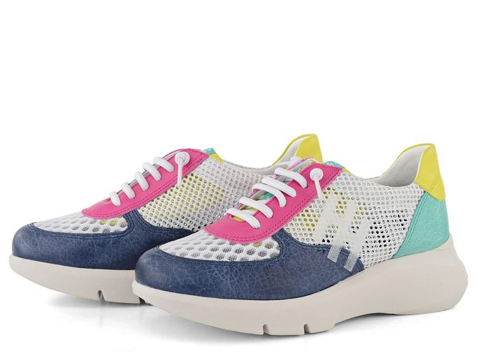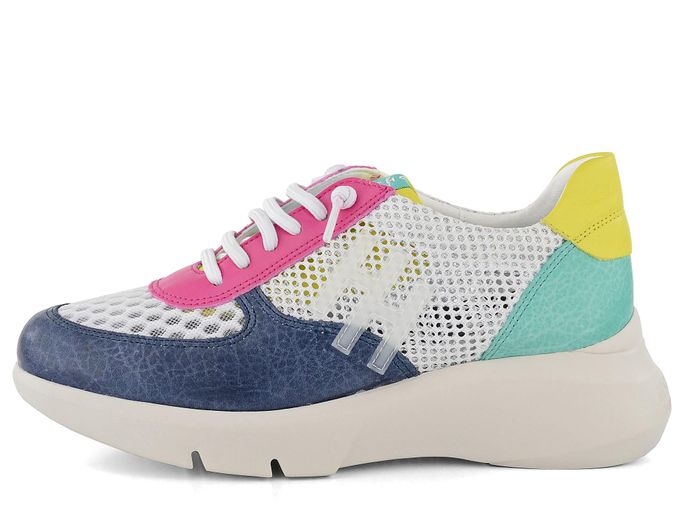 Dámské polobotky laděné do sportovního stylu s barevným vzorem a na vyšší platformě s klínem.