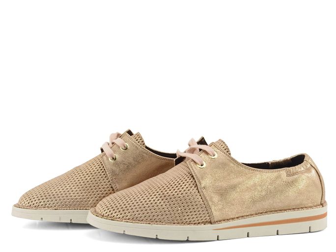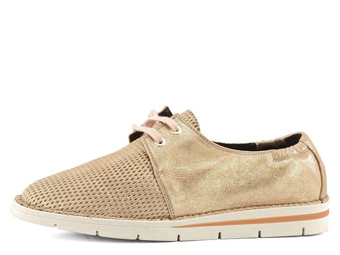Dámské luxusní polobotky z metalické kůže v odstínu světlé platinové barvy a s flexibilní podešví s klínkem.