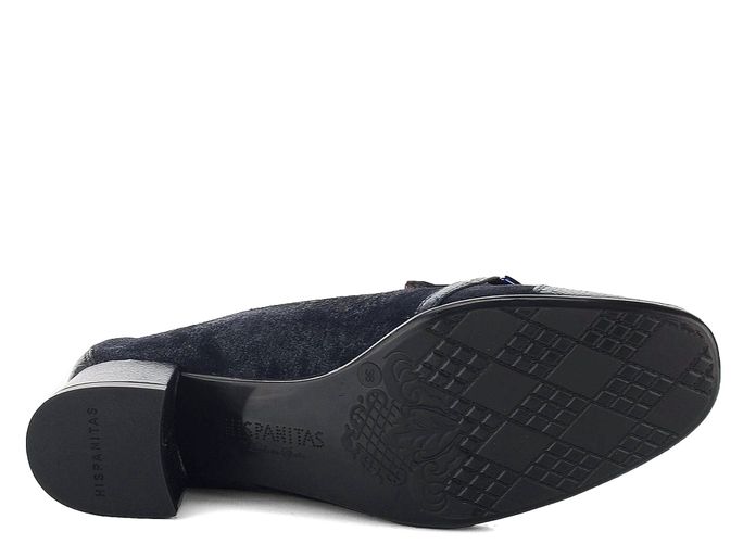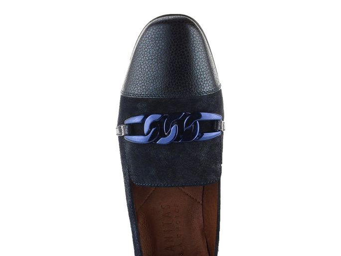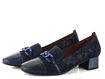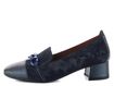 Luxusní dámské elegantní polobotky v tmavě modré metalické barvě a na středně vysokém potaženém podpatku.
