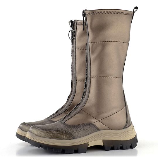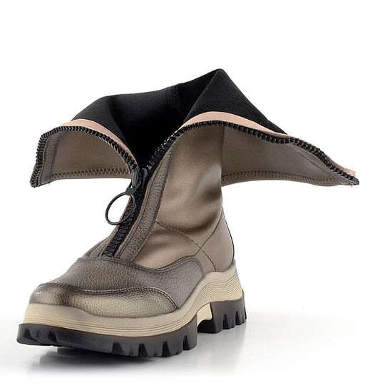 Originální dámské kozačky ve sportovním střihu a v pěkné kombinaci barev a materiálů.