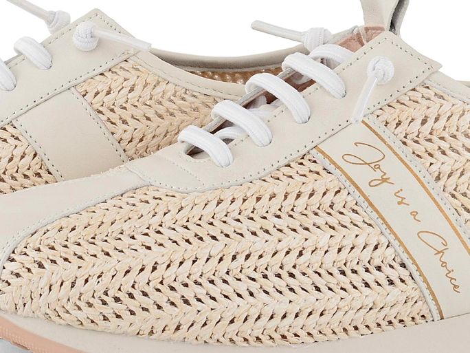Dámské prozouvací tenisky s gumičkovými tkaničkami a v zajímavé materiálové kombinaci kůže a lýka.