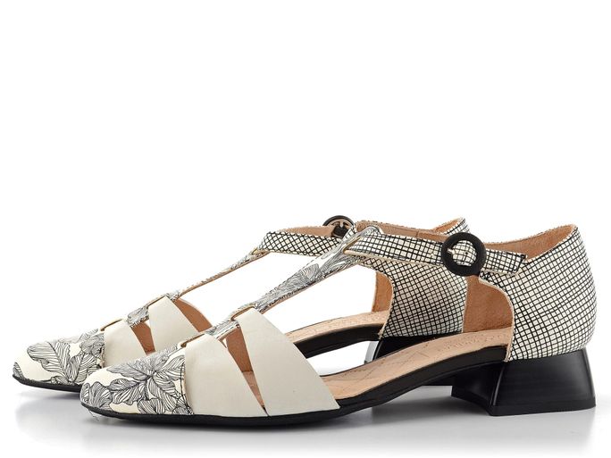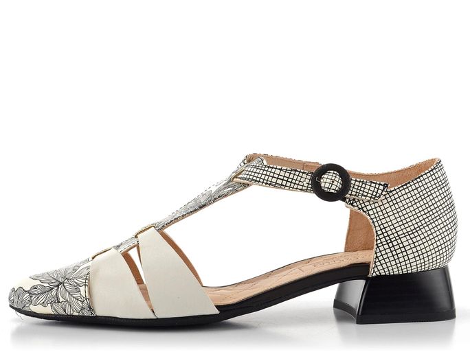 Dámské luxusní polobotky na podpatku s módními prostřihy a originálním potiskem.