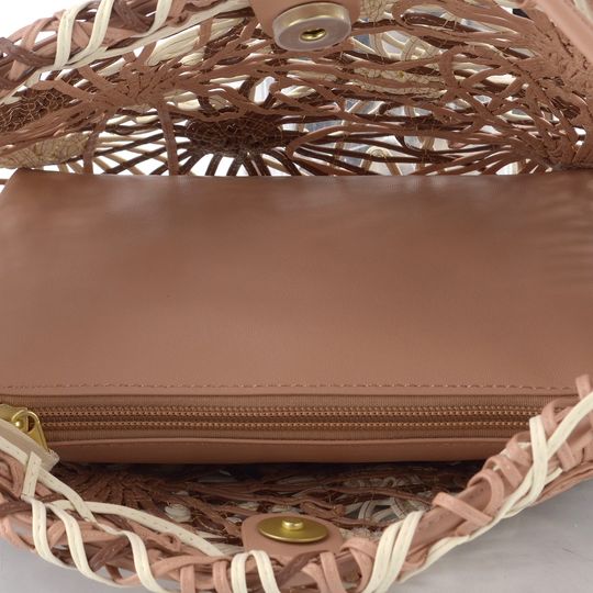 Jedinečná dámská kabelka od značky Hispanitas přináší styl a eleganci do každodenního života. Její barevný květinový motiv z tenkých syntetických pásků dodává kabelce originální vzhled, který zaujme na první pohled. S malým střihem a příjemnou kombinací krémové, světle hnědé a tmavě hnědé barvy je ideální volbou pro jarní a letní sezónu.