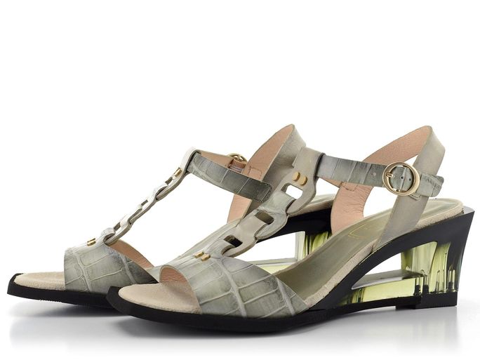 Sofistikované dámské sandály s módní hranatou špičkou a klínkem opatřeným průřezem.