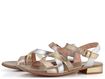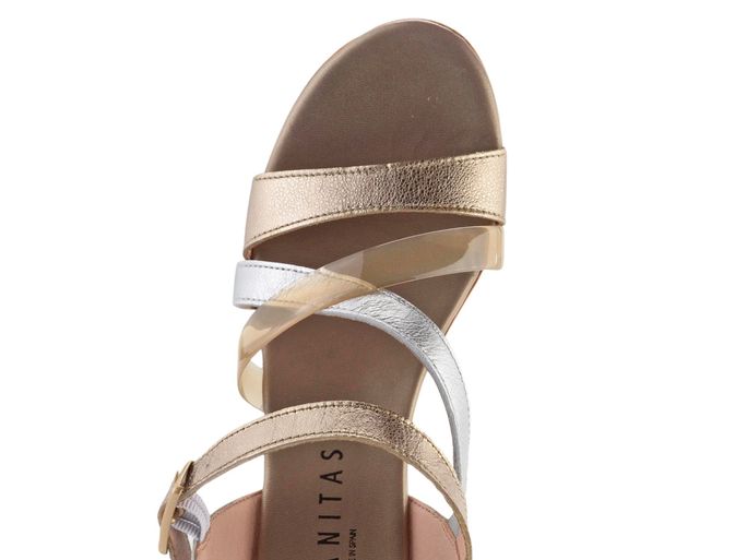 Elegantní kožené sandálky se španělským šmrncem od značky Hispanitas jsou ideální volbou pro jarní a letní sezónu. Tyto páskové boty kombinují stříbrnou a platinovou barvu, což jim dodává luxusní vzhled. Svršek je vyroben z jemně strukturované, metalické kůže, přičemž jeden z pásků je z průhledné syntetiky. Kulatý střih a kotníkový pásek s délkovou regulací zaručují pohodlné nošení. Nártový pásek má z vnitřní strany všitou pruženku, což zvyšuje komfort. Podšívka je ze syntetiky, zatímco stélka je z měkké kůže s technologií Triflow®, která nabízí tři měkké vrstvy pro celodenní pohodlí. Flexibilní latexová podešev a široký podpateček potažený metalickou kůží zajišťují stabilitu. Výška podpatku je 2,5 cm. Tento model je ideální pro městské prostředí, lehké procházky i formální příležitosti.