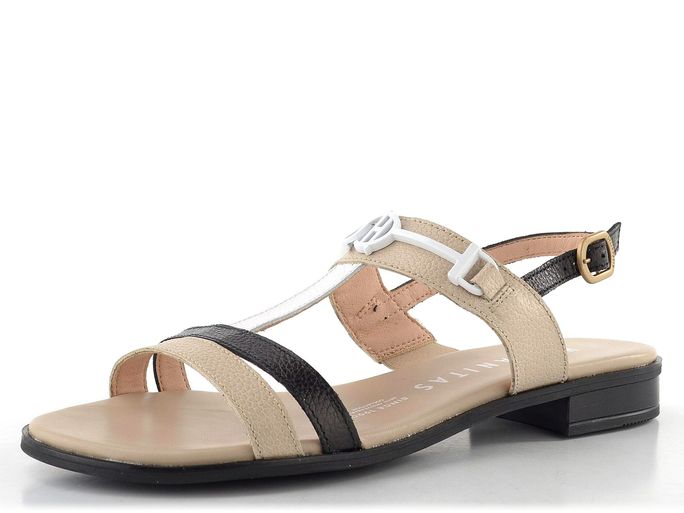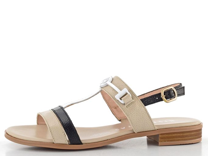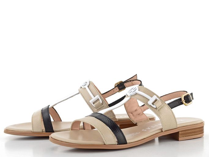 Kožené sandály od značky Hispanitas přinášejí španělský šmrnc do vašeho šatníku. Jsou ideální volbou pro ženy, které hledají komfortní a stylovou obuv na jaro a léto. Díky strukturované kůži a kombinaci černé, bílé a béžové barvy s lehkým šedým nádechem, tyto sandály zaujmou na první pohled. Pohodlný kulatý střih a široký podpateček o výšce 2,2 cm zajišťují celodenní komfort. Nártový a kotníkový pásek s pruženkou umožňují snadné přizpůsobení. Technologie Triflow® se třemi měkkými vrstvami ve stélce poskytuje maximální pohodlí. Flexibilní latexová podešev a syntetická podšívka doplňují jejich kvalitu.