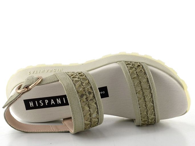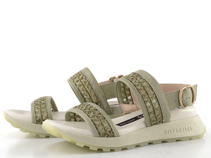Dámské sandály na platformě od španělské značky Hispanitas představují ideální volbu pro jarní a letní dny. S kulatou špičkou a sportovnějším střihem z kombinace strukturované kůže a splétaného umělého lýka v světlé šedozelené barvě se snadno kombinují s různými outfity. Nártový pásek s všitou pruženku a délkově nastavitelný patní pásek se sponou zajistí perfektní pohodlí a stabilitu. Měkká stélka s technologií TRIFLOW® poskytuje celodenní komfort díky třem měkkým vrstvám. Vyšší platforma s mírným klínkem a podešev s hrubým vzorkem dodávají těmto sandálům nejen styl, ale i funkčnost pro každodenní nošení.