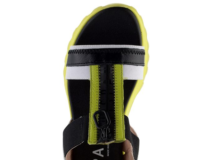 Dámské sandály s předním zipem v originálním barevném pojetí.