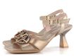 Luxusní dámské metalické sandály s dominantní sponou a originálně tvarovaným podpatkem.