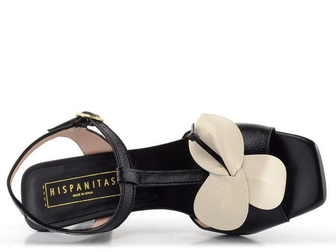 Elegantní dámské sandály od španělské značky Hispanitas jsou ideální volbou pro jarní a letní sezónu. Tyto páskové boty vynikají hranatým tvarem špičky a kombinací černé a smetanové barvy. Svršek je vyroben z hladké kůže, zatímco nártové pásky jsou podšité měkkou syntetikou pro maximální pohodlí. Dominantní kytička na nártu dodává sandálům jedinečný vzhled.