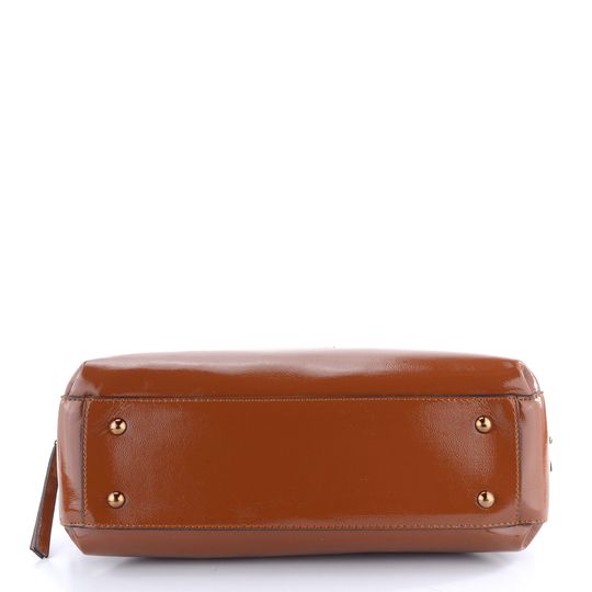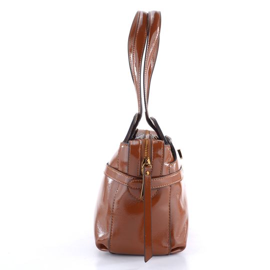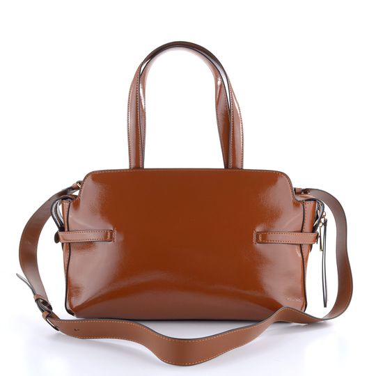 Luxusní dámská shopper kabelka v elegantním střihu a lakované hnědé barvě.