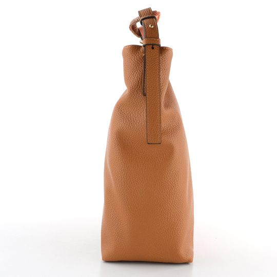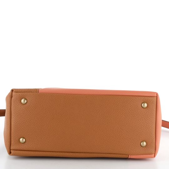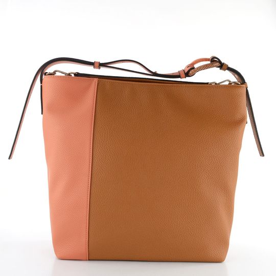 Hispanitas shopper kabelka v kombinaci hnědé a meruňkově oranžové barvy je ideálním doplňkem pro ty, kteří hledají stylový a funkční kousek. Díky větší velikosti pohodlně pojme formát A4, což ji činí skvělou volbou pro každodenní použití. Kabelka je vyrobena z poddajné strukturované syntetiky, což zajišťuje její trvanlivost. Uvnitř najdete zipovou kapsičku na cennosti a další kapsu na mobil, což přidává na praktičnosti. Nastavitelný ramenní popruh s ozdobnou sponou a odepínatelné madlo poskytují flexibilitu nošení. Kabelka je doplněna kováním v matné bronzové barvě a drobným logem značky, což dotváří její jedinečný vzhled.