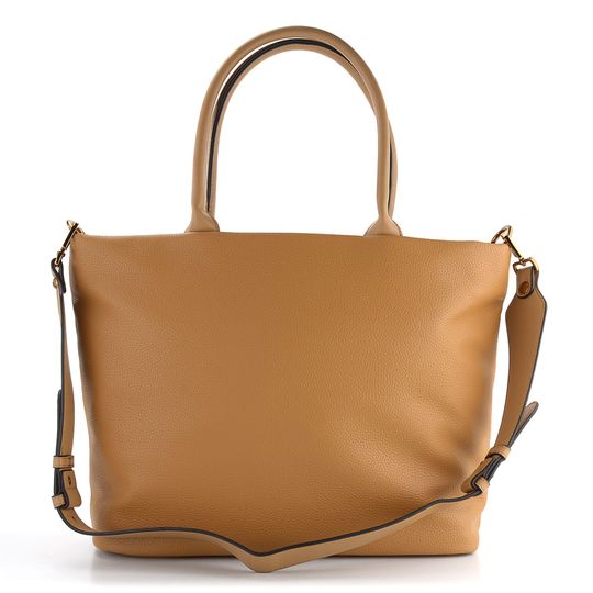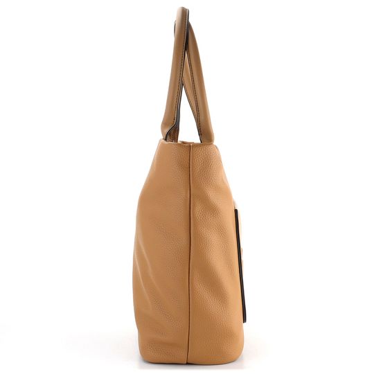 Vyrobena z poddajné strukturované syntetiky, tato kabelka nabízí nejen eleganci, ale i odolnost. Kování v barvě mědi a velké vytlačované logo značky na přední straně dodávají kabelce sofistikovaný vzhled. Praktické detaily zahrnují kapsičku na magnetický druk na přední straně, zipovou kapsičku na cennosti a otevřenou kapsičku na mobil uvnitř.