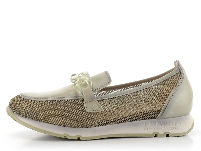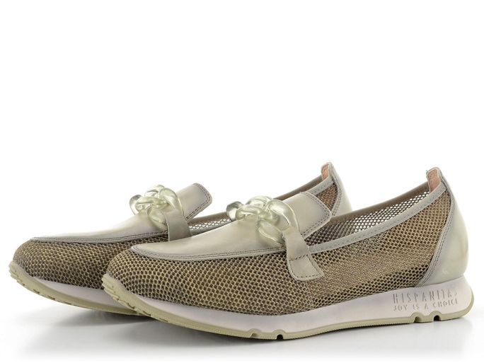 Vzdušné dámské mokasíny ve světlém khaki odstínu s ležérní podešví.