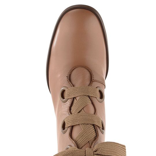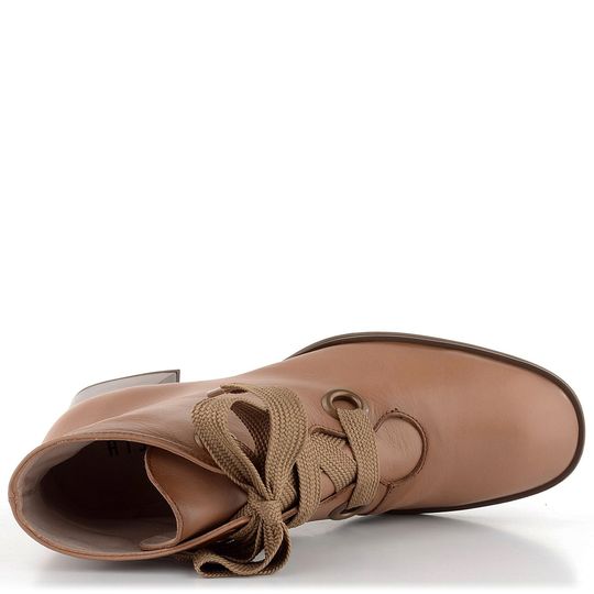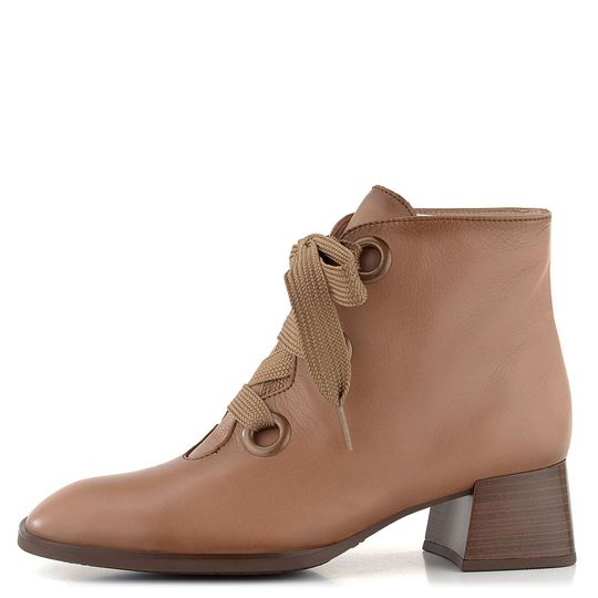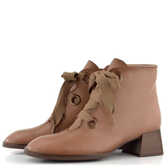 Elegantní mandlově hnědý kotník z hladké kůže s nápadným provazováním.