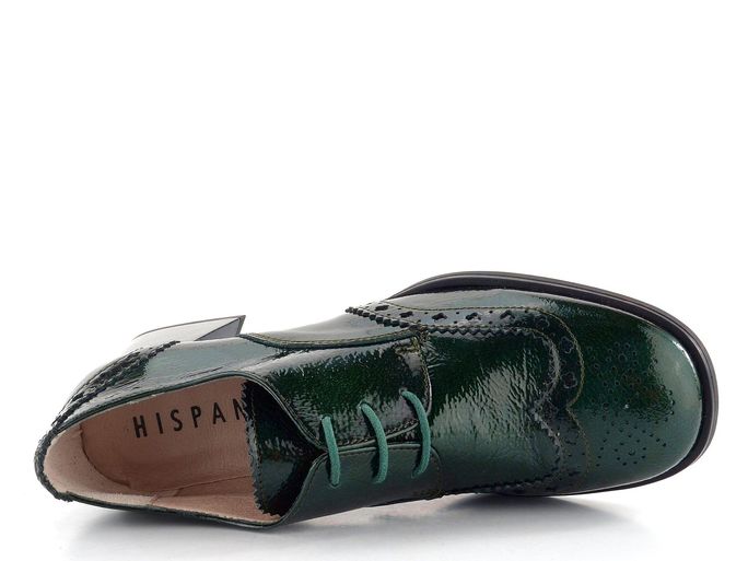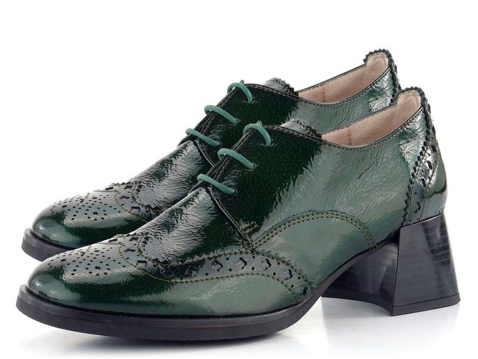Luxusní dámské polobotky od značky Hispanitas v elegantní lahvově zelené jsou dokonalým spojením stylu a pohodlí. Svršek z lakované kůže se pyšní ozdobným prořezáváním a perforací, což dodává botám jedinečný vzhled. Prostorná kulatá špička a měkká stélka s technologií TRIFLOW® zajišťují komfort při každém kroku, jako byste chodili po gelovém polštářku. Vnitřní podšívka z umělého mikrovlákna s termoregulační funkcí je ekologická a odolná. Široký podpatek o výšce 5 cm a latexová podešev s hrubším vzorkem poskytují stabilitu a bezpečnost na každém povrchu. Tyto polobotky jsou ideální volbou pro podzimní a zimní sezónu, ať už míříte do kanceláře nebo na procházku městem.
