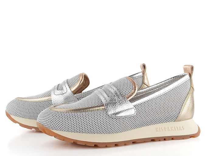 Dámské luxusní mokasíny z prodyšné síťoviny a metalické kůže na pohodlné sportovnější podešvi.