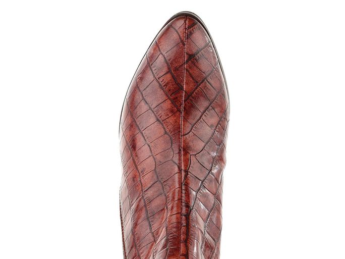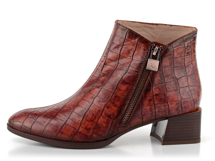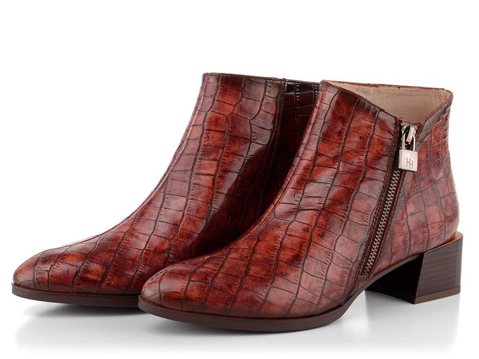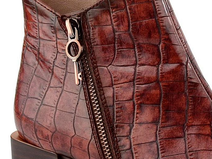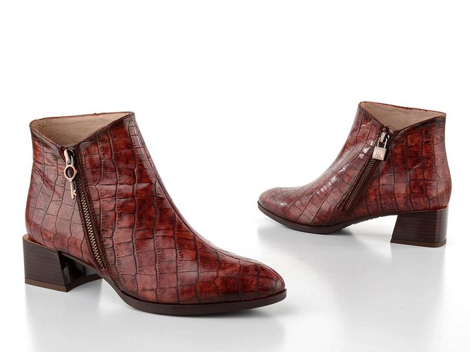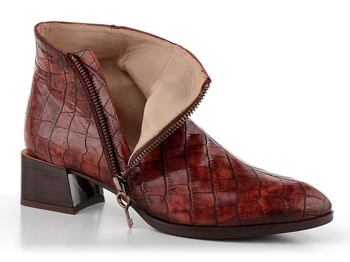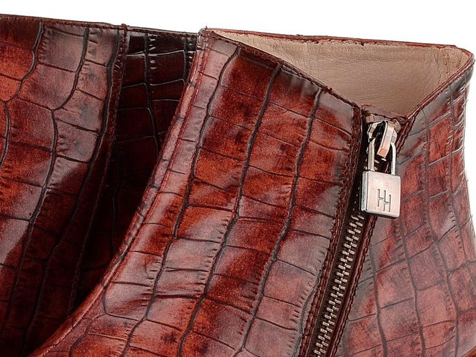 Luxusní dámský kotník v originálním pojetí, vyrobený z kůže s kroko vzorem a funkčním zipem na vnější straně.