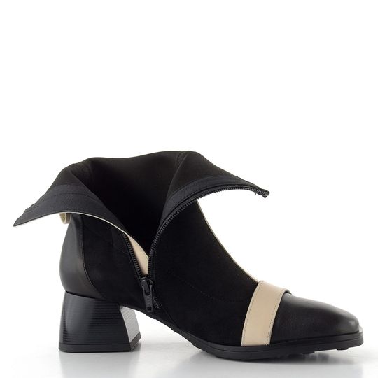 Luxusní dámský kotníček od značky Hispanitas je ideální volbou pro podzimní a zimní sezónu. Svršek z pružné broušené textilie v kombinaci s hladkou kůží zajišťuje nejen stylový vzhled, ale i komfort při nošení. Černá barva se smetanovými doplňky dodává botám elegantní nádech.