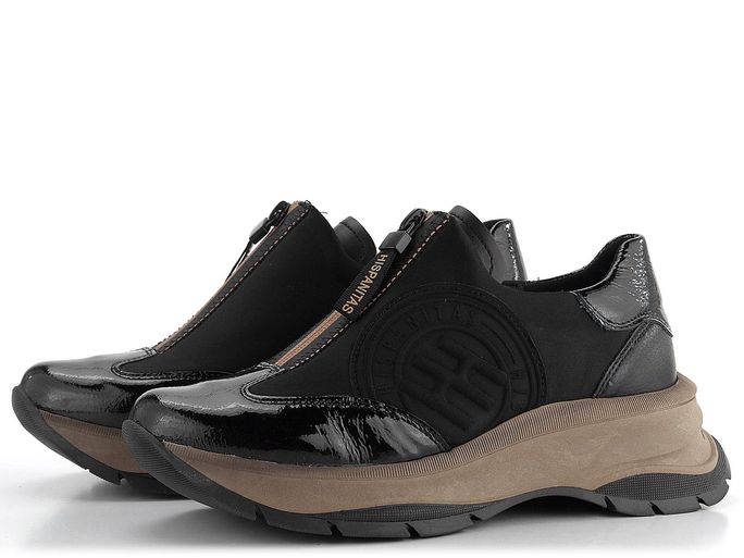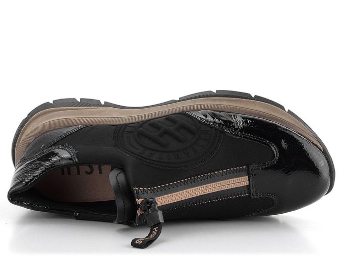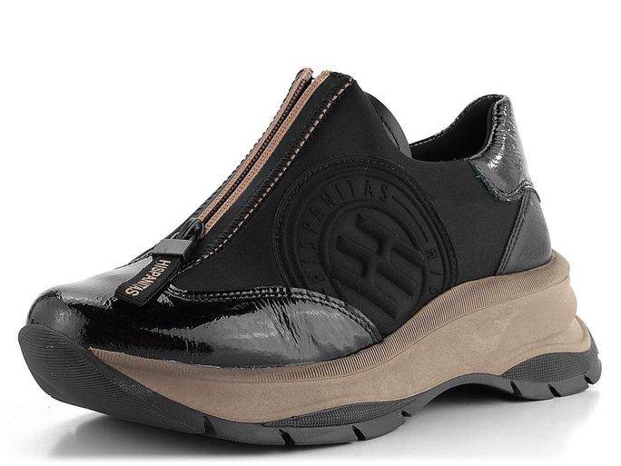Objevte jedinečné tenisky značky Hispanitas, které kombinují styl a pohodlí. Tyto tenisky na vysoké platformě jsou dokonalým spojením softshellové textilie a lakované a hladké kůže. Elegantní černá barva s béžovými doplňky dodává teniskám luxusní vzhled, který se hodí k různým outfitům.