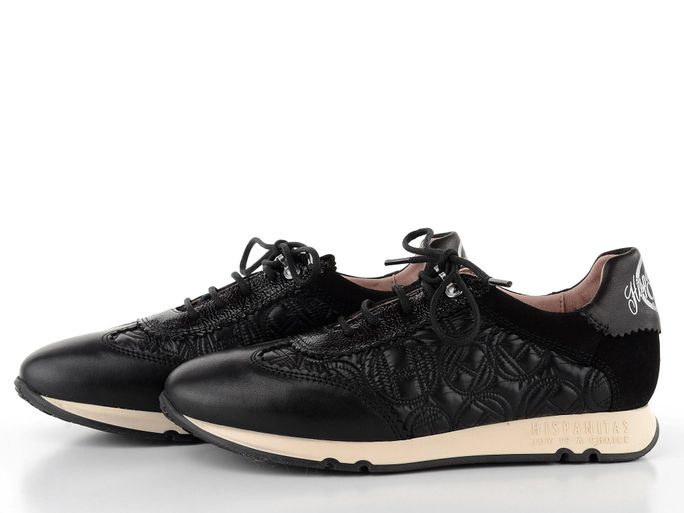 Dámské módní tenisky v černé barvě s vytkáváním a sportovnější podešví.