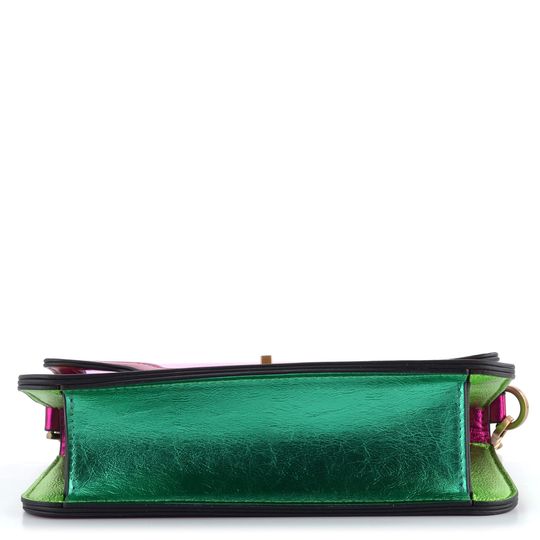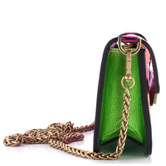 Originální dámská crossbody kabelka v menší velikosti v zářivých metalických barvách.