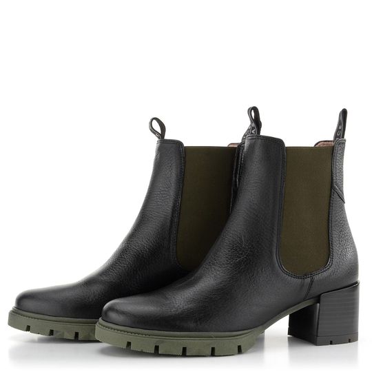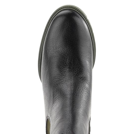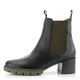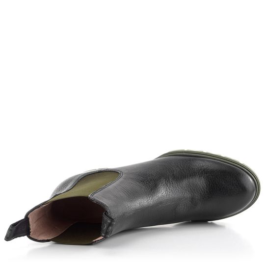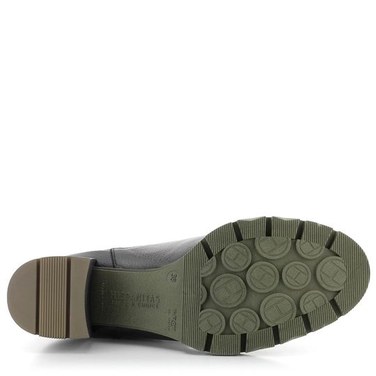 Exkluzivní dámské kotníkové boty od značky Hispanitas kombinují vytříbený styl, eleganci a prvotřídní materiály. Svršek z hladké kůže s jemnou strukturou v černé barvě a široké pružiny v olivově zelené barvě na obou stranách zajišťují snadné obutí. Boty mají pohodlný střih s kulatou špičkou a stabilní podpatek vysoký 5,5 cm. Uvnitř naleznete syntetickou podšívku (mimo pružiny), díky čemuž nejsou zateplené. Extra měkká stélka s technologií TRIFLOW poskytuje výjimečné odpružení a celodenní pohodlí. Vyšší olivově zelená latexová podešev s hrubým vzorkem a výškou kotníku 14 cm (bez podpatku) zajišťuje stabilitu a komfort při každém kroku. Tento model je ideální volbou pro podzimní a zimní sezónu 2021/22.