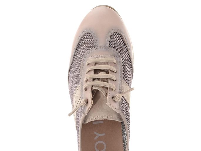 Dámské prozouvací tenisky ve sportovním vzdušném střihu s gumičkovými tkaničkami.