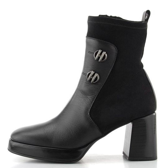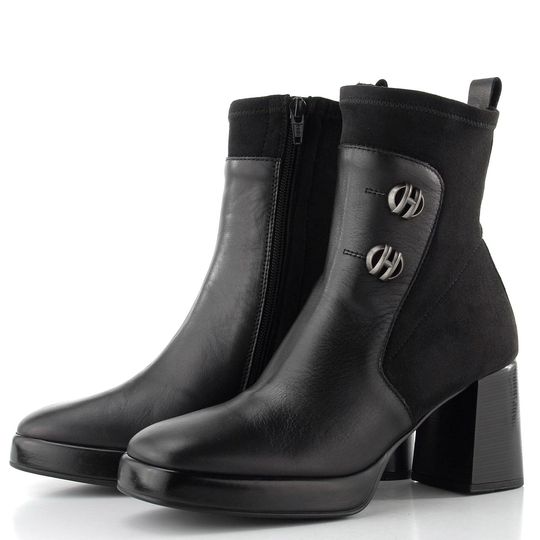 Elegantní dámský kotník od značky Hispanitas vyniká svým osobitým designem a kvalitním zpracováním. Svršek je kombinací hladké kůže a pružné broušené textilie, což zajišťuje nejen styl, ale i pohodlí. Černá barva je nadčasová a snadno se kombinuje s různými outfity.